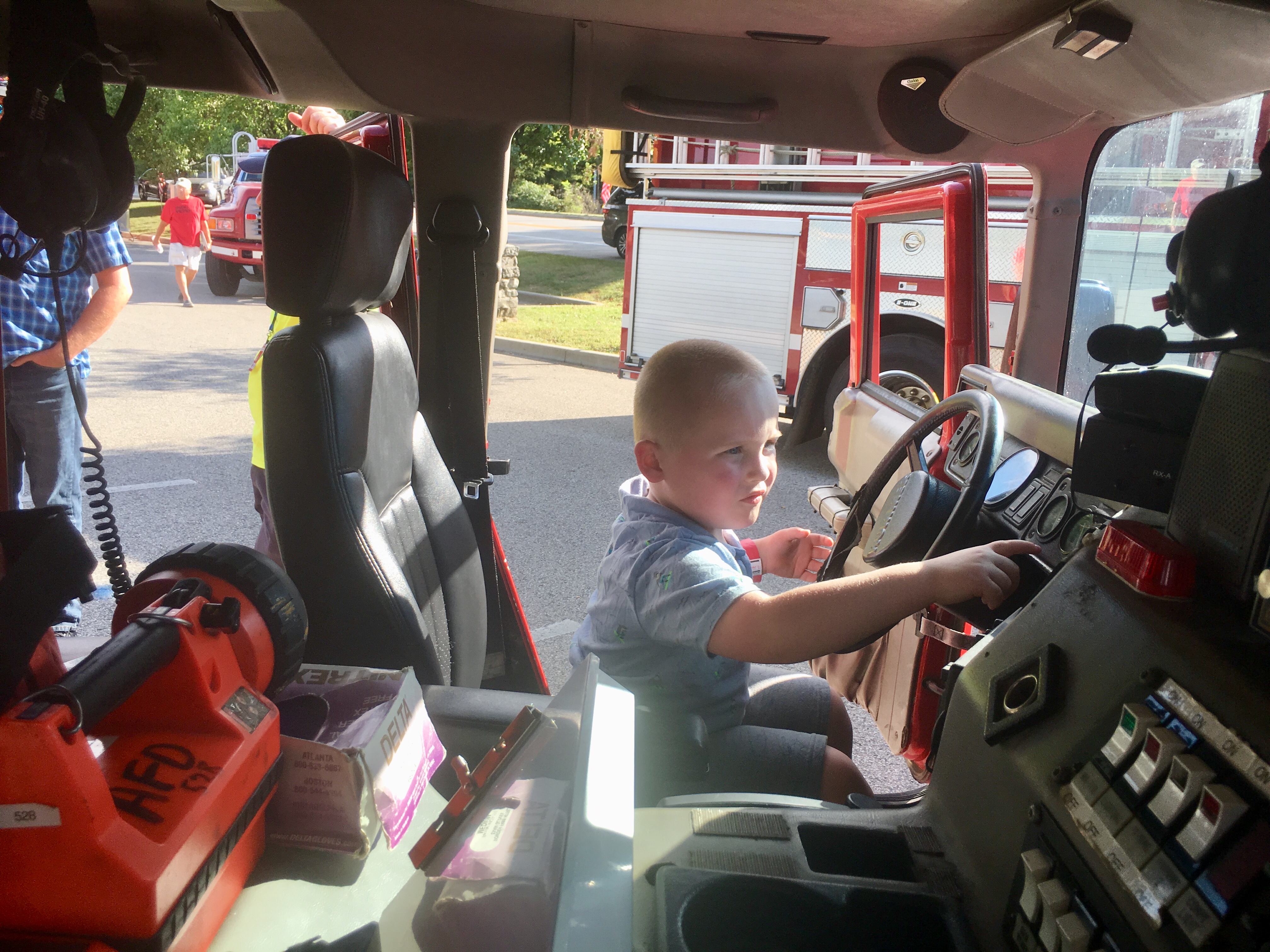 The Adventure Kids enjoyed climbing into various Aurora emergency vehicles from different eras.